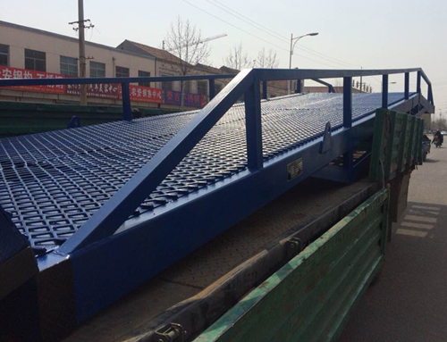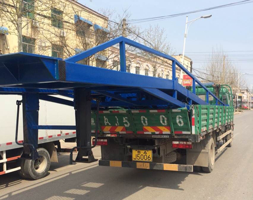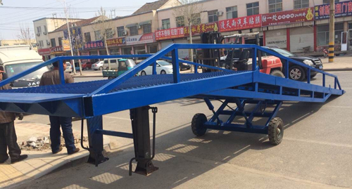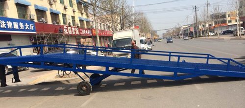 移動式登車橋與叉車配合使用的貨物裝卸輔助設備,可根據汽車車廂的高低調節高度,叉車可以直接通過本設備駛入車廂內部進行貨物的批量裝卸,僅需單人作業,即可實現貨物的快速裝卸。它使企業減少大量勞力,提高工作效率,獲取更大經濟效益。